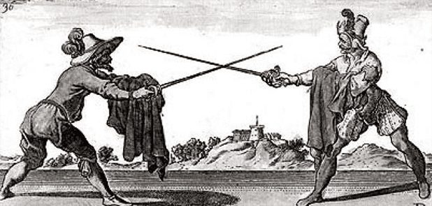 Surge, também, nesse período, uma grande rivalidade entre a espada, cujo principal golpe era o de ponta, e o sabre, que o principal golpe era o de corte.
